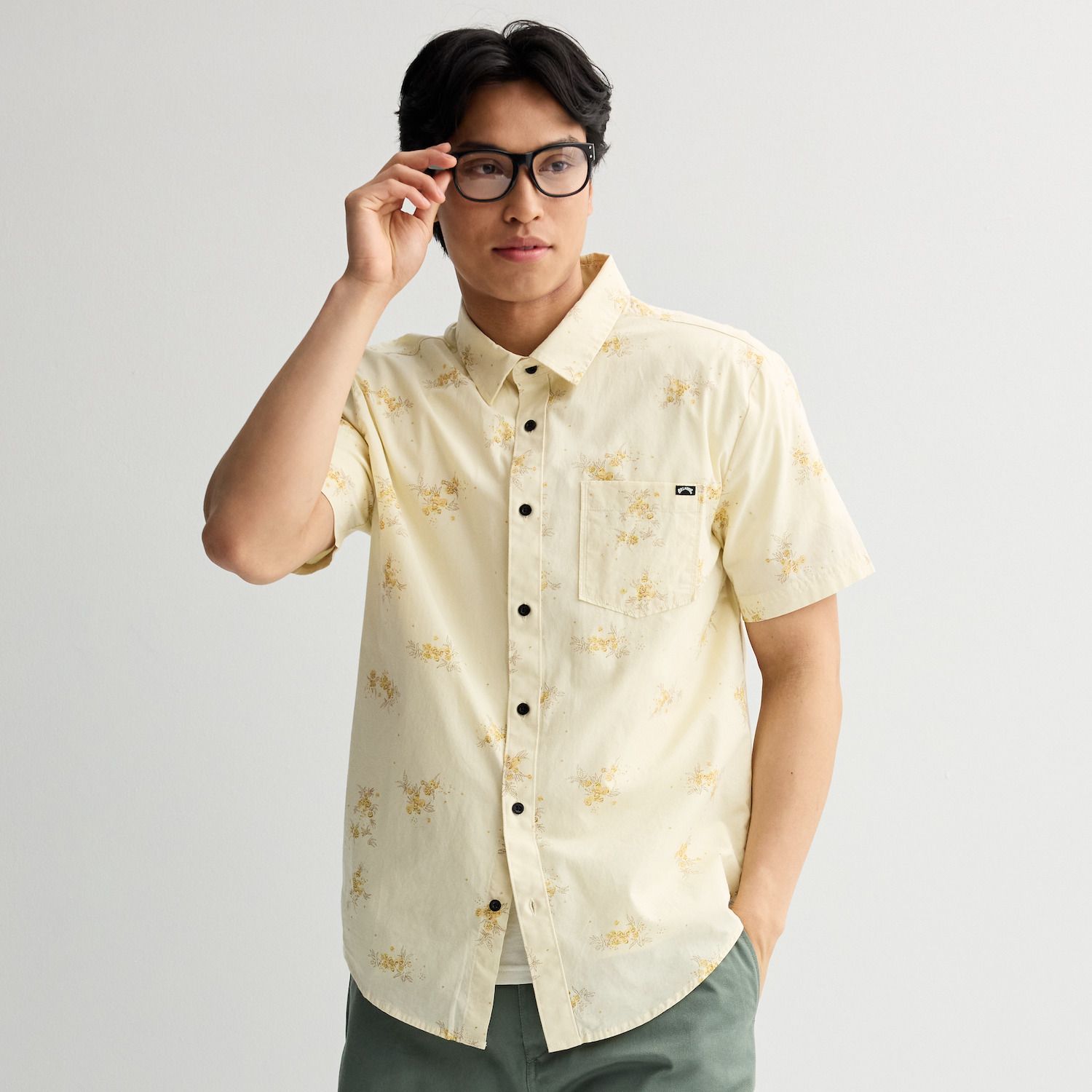 Men's Billabong Khaki Short Sleeve Button-Down Shirt